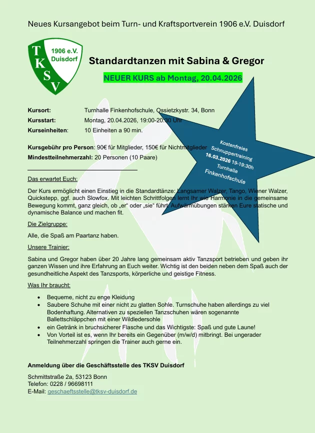 Anmeldung über die Geschäftsstelle des TKSV Duisdorf