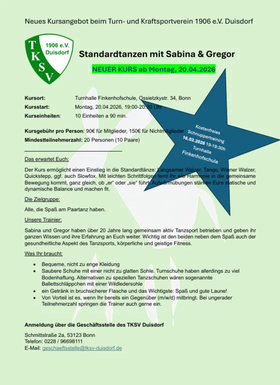 Neues Kursangebot beim Turn- und Kraftsportverein 1906 e.V. Duisdorf